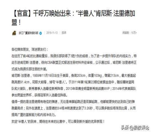 2019年11月13日,CBA广厦男篮官方宣布签下肯尼思·法里埃德引发外界的广泛关注,但仅仅打了7场比赛,广厦男篮就宣布裁掉法里埃德。