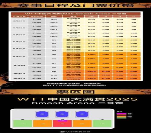 WTT中国大满贯赛事日程及门票价格今日出炉,将于9月4日上午10:00首次开启售票,价格从88元到1888元不等。