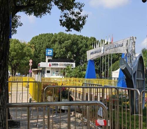 图为闵行警方在大师赛场馆2号门区域部署“八字形”入场等候区,确保候场客流安全有序
