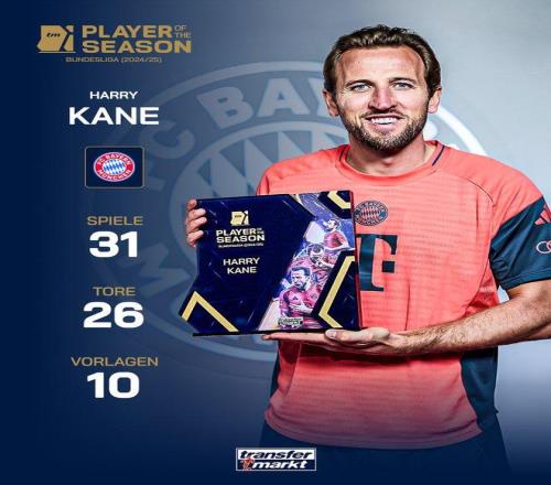 官方:凯恩获评德转202425赛季德甲最佳球员
